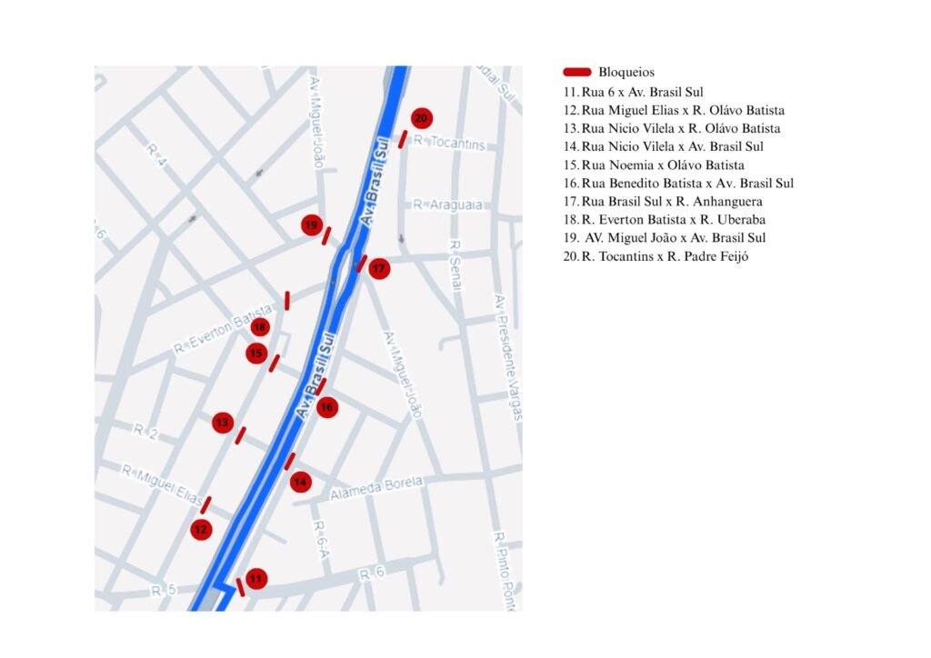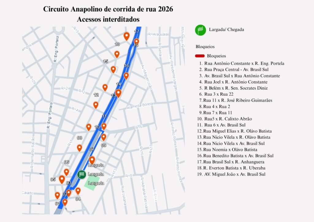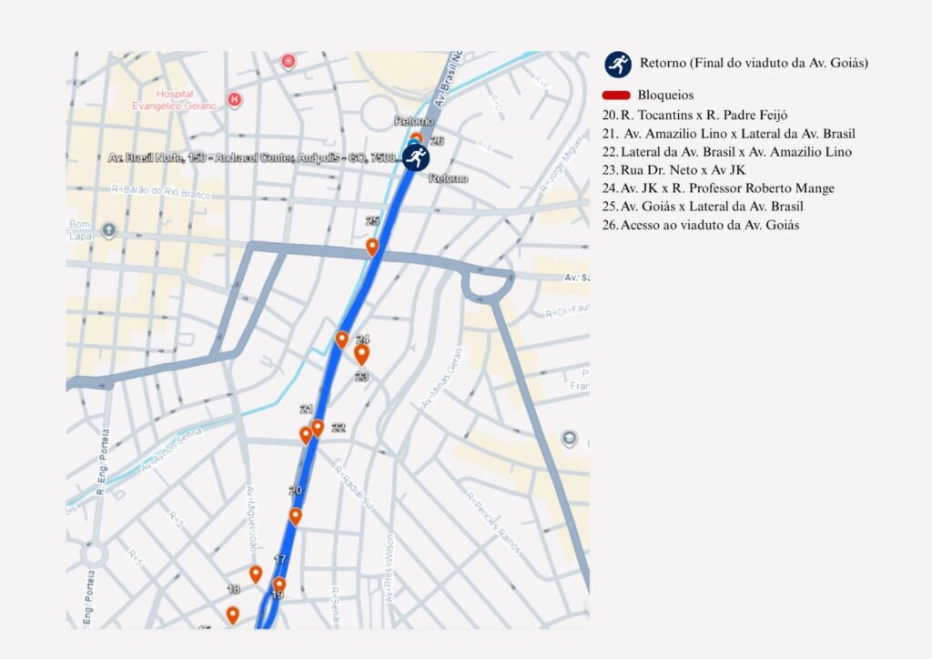 De acordo com a Companhia Municipal de Trânsito e Transporte (CMTT), o trajeto pela Avenida Brasil Sul terá interdições a partir das 16h, na região próxima ao pórtico de saída dos atletas, com fechamento da via no sentido sul–norte, e, às 17h, haverá bloqueio total das duas pistas para garantir a segurança dos participantes. As ruas serão liberadas paulatinamente, a medida em que os participantes vão concluindo as etapas.