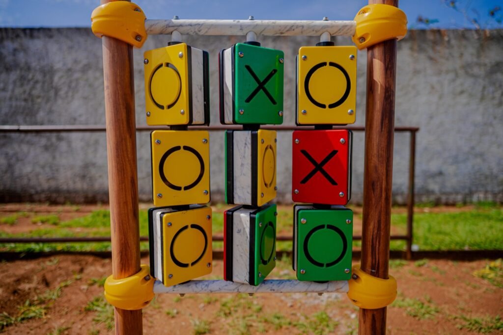 Na Praça da Vila Esperança, foram instalados três equipamentos: um espaço multi recreativo, que favorece o desenvolvimento de habilidades por meio de atividades coletivas; um balanço duplo juvenil, voltado para crianças maiores; e um jogo da velha inclusivo, destinado ao desenvolvimento e estímulo de crianças com Transtorno do Espectro Autista (TEA).
