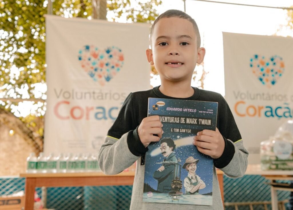 Além dos serviços, o Voluntários de Coração levou cestas de alimentos para a população arrecadados durante o Futebol Solidário entre Romário e Alex Dias. Os moradores da região também receberam cestas com frutas selecionadas e higienizadas pela equipe do Banco de Alimentos, que distribuiu deliciosos doces de banana e abóbora para as famílias. Na ocasião, foram entregues ainda misturas para bolo Tio Jorge, doadas pelos parceiros do CDA Alimentos, álcool em gel, peças de roupas novas e fraldas descartáveis, doadas por voluntários, além de mudas de hortência, espirradeira e brinco-de-princesa. Para deixar as crianças mais felizes, elas puderam escolher livros infantis vindos da campanha de doação de livros realizada pelo Voluntários de Coração.